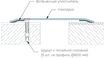 Профиль крепится дюбель-гвоздями и обеспечивает компенсацию нагрузок при ширине шва от 10 до 200 мм, высоте профиля 5 мм и видимой ширине от 70 до 300 мм